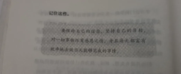 你要保持正心正念的信念,坚定自己的目标去行动,你要珍惜时间,富有效率的去做当天能够完成的所有事情。